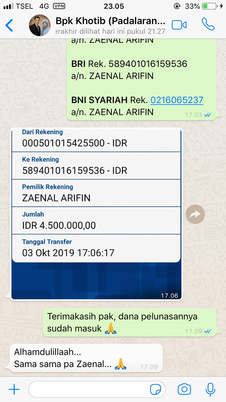 Semua Transaksi A/N Atas Nama : Bpk. Zaenal Arifin